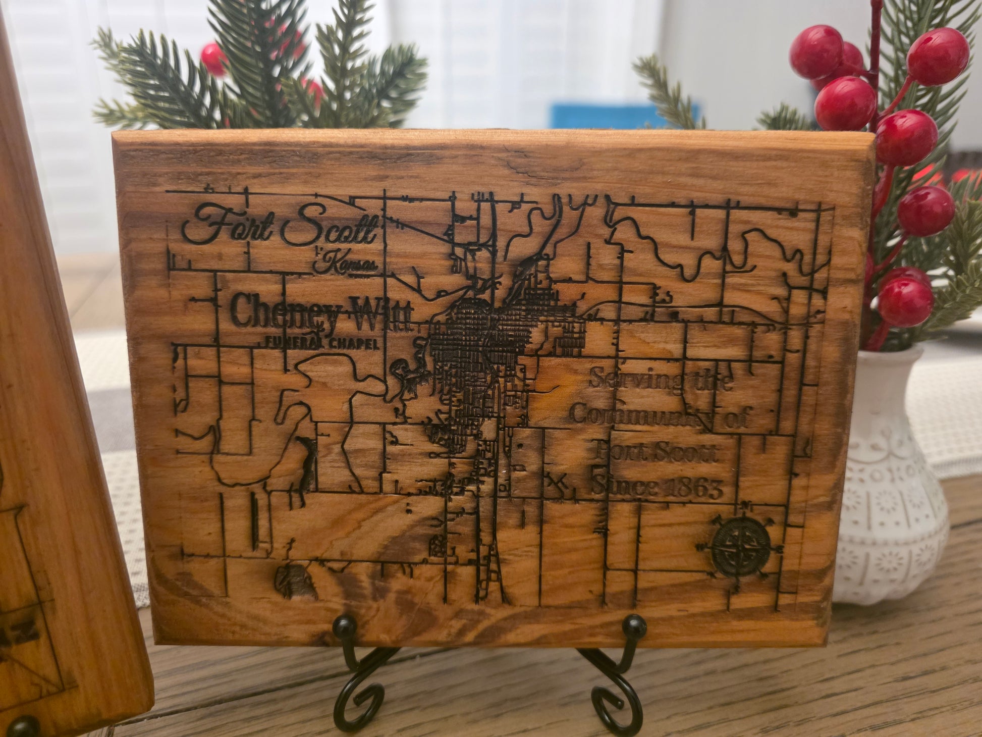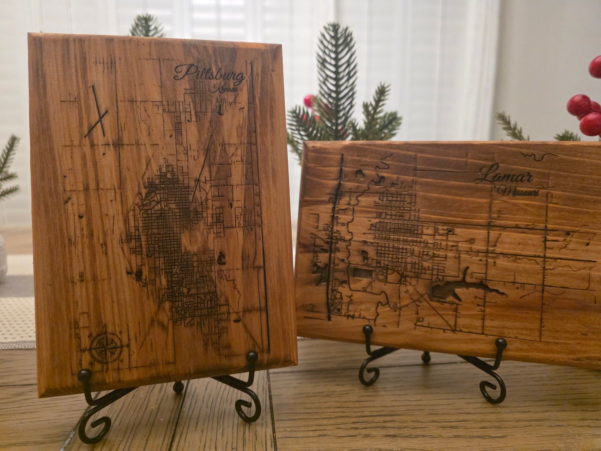 Each map is precision-engraved on real hardwood and finished by hand, creating a warm, rustic piece that’s both personal and beautifully crafted.