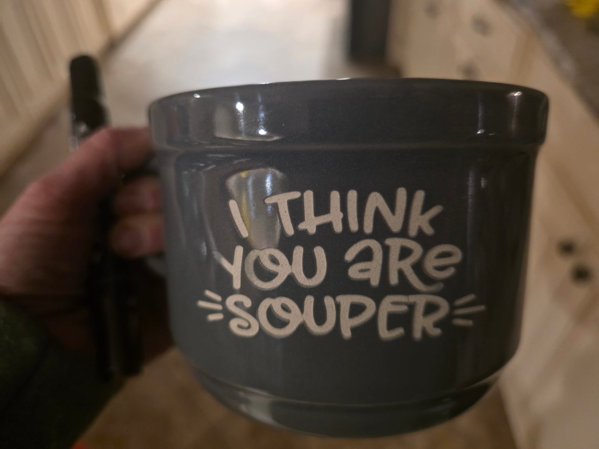 Engraved Soup Mug with Handles, I Think You're Souper, Ceramic Soup Bowl, 22 oz Bowl with Handles