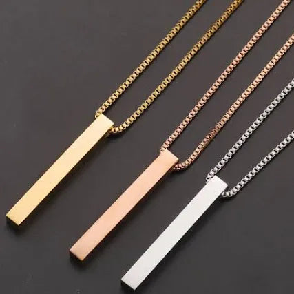 Personalized Stainless Steel vertical Bar Necklace 3 colors