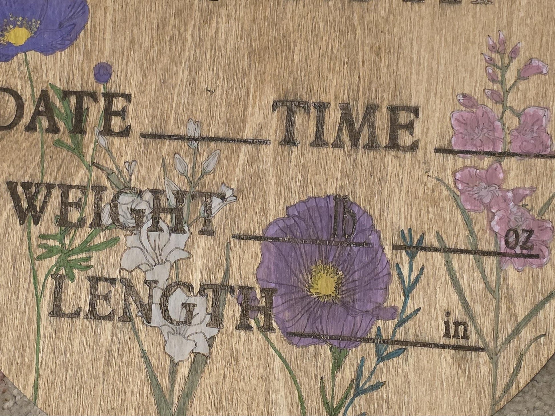 Whether you’re designing a boho nursery, upgrading a toddler’s space, or searching for a thoughtful new baby gift, this floral sign adds warmth, nature, and charm. Lightweight and easy to hang, it’s a stunning centerpiece for any wall. It matches 2 other items, Wildflower Birth Announcement and Wildflower Babies first year.