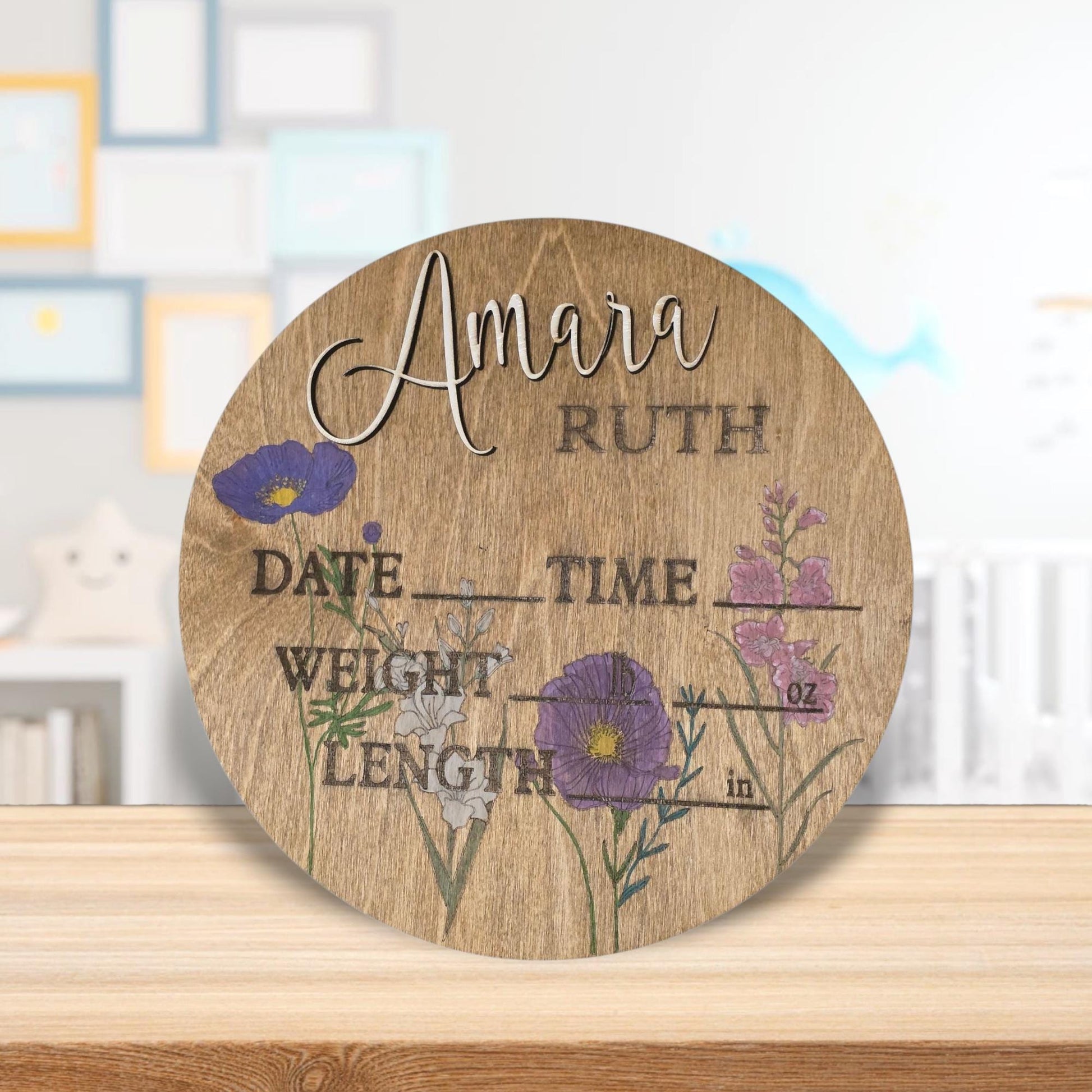 Wildflowers 3D Baby Birth Announcement Stats Sign Personalized Nursery Decor 11 Inch Newborn Birth Details Wall Art Keepsake Gift